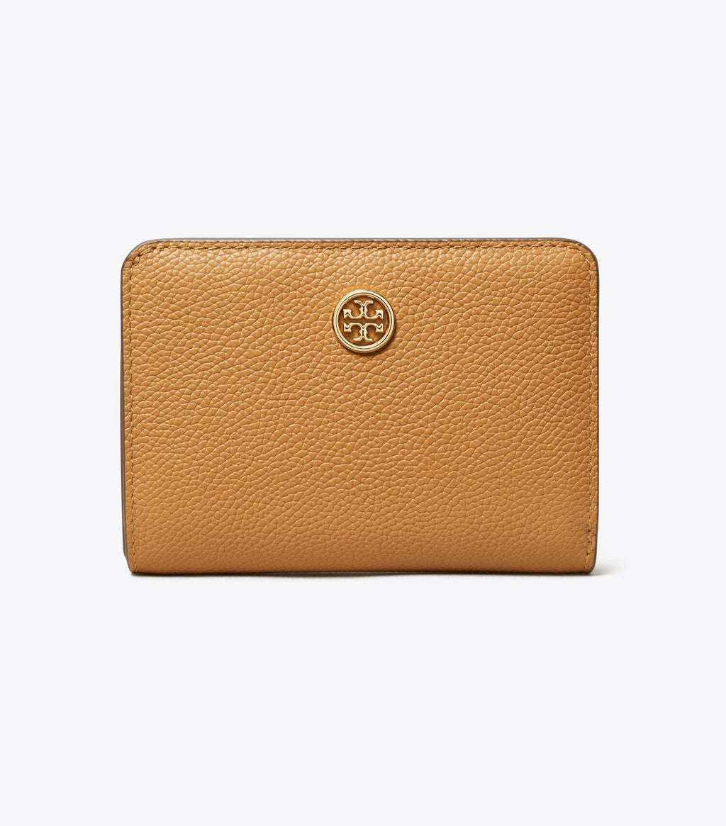 A collection named for Tory's parents, Buddy and Reva Robinson, and inspired by their love of travel. The Robinson Bi-Fold Wallet is made of beautiful pebbled leather. It is perfectly sized for mini bags, with multiple compartments, including a coin pocket.